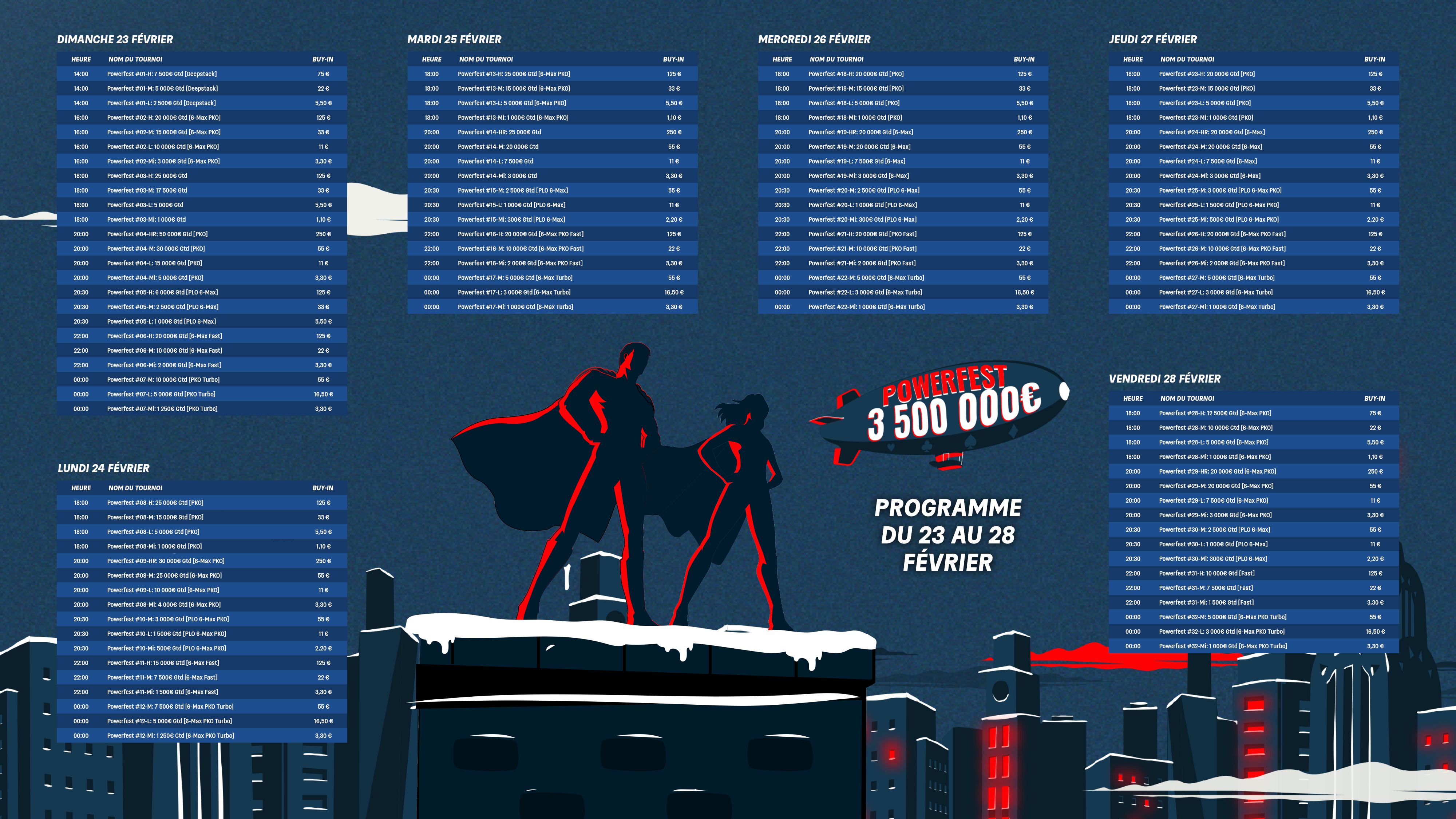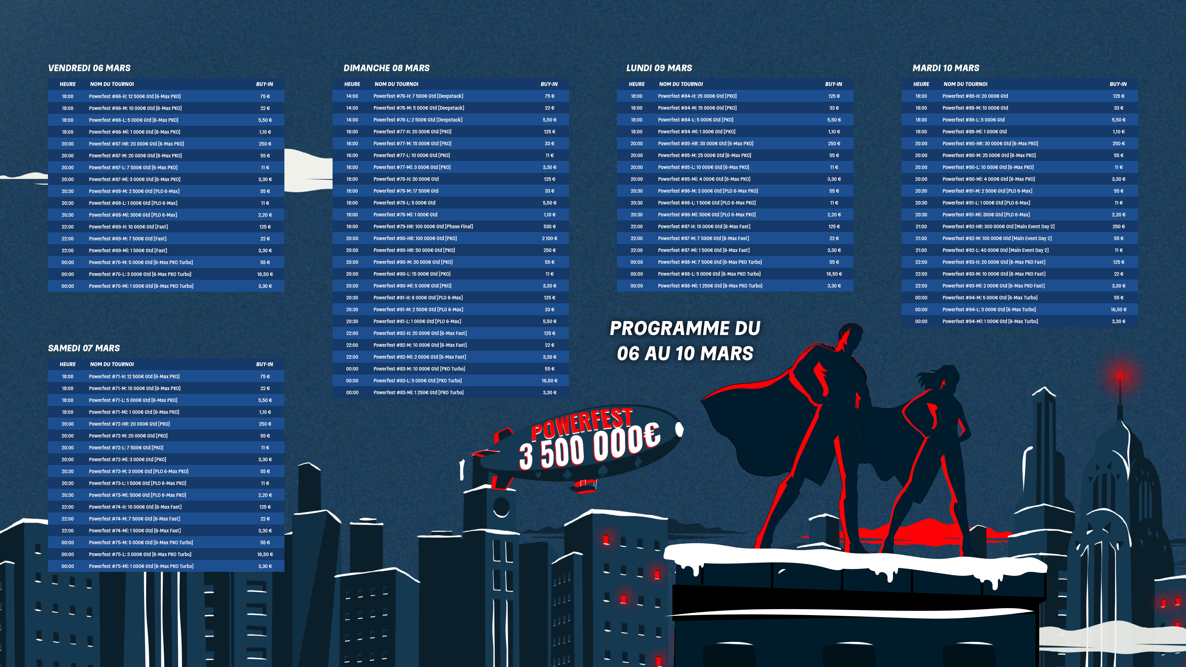Pour vous mettre à l'heure de ces powerfest, et pour ne rater aucun événement, PMU Poker vous a concocté trois fonds d'écran en 4K. Ainsi, plus aucune excuse pour rater un tournoi !