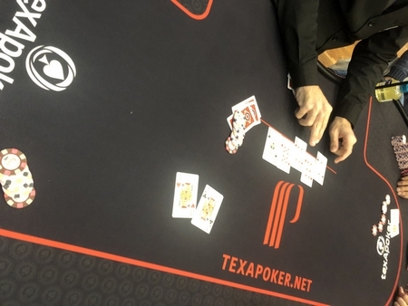 Une relanche UTG de MR IRMA de la Ciotat Poker Club, NICO envoie la boite avec les Valets.