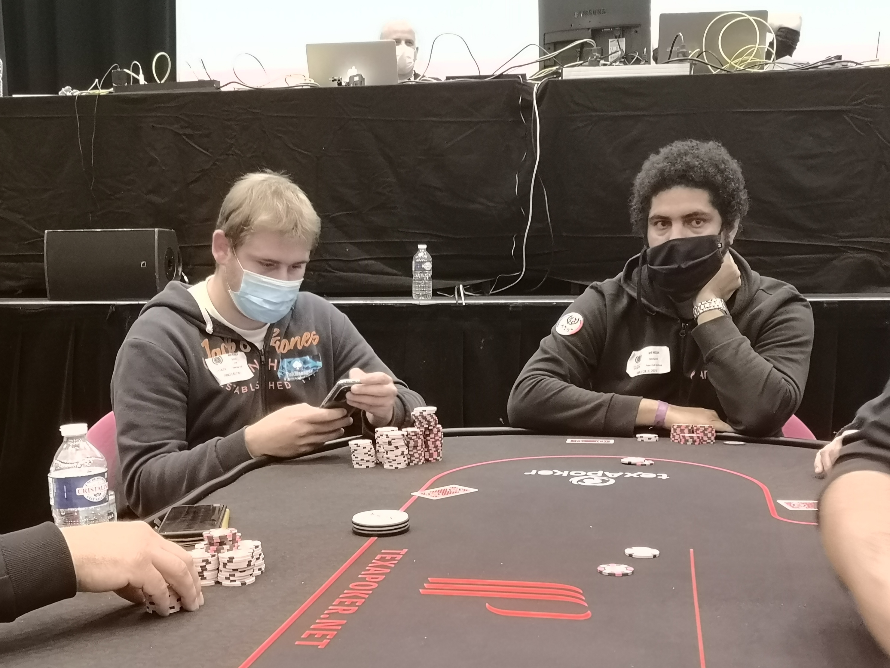 Nico du Poker Club d'Avaranches ne se laisse par faire, même avec un petit stack à 3 sortants de la fin de ce Day1.