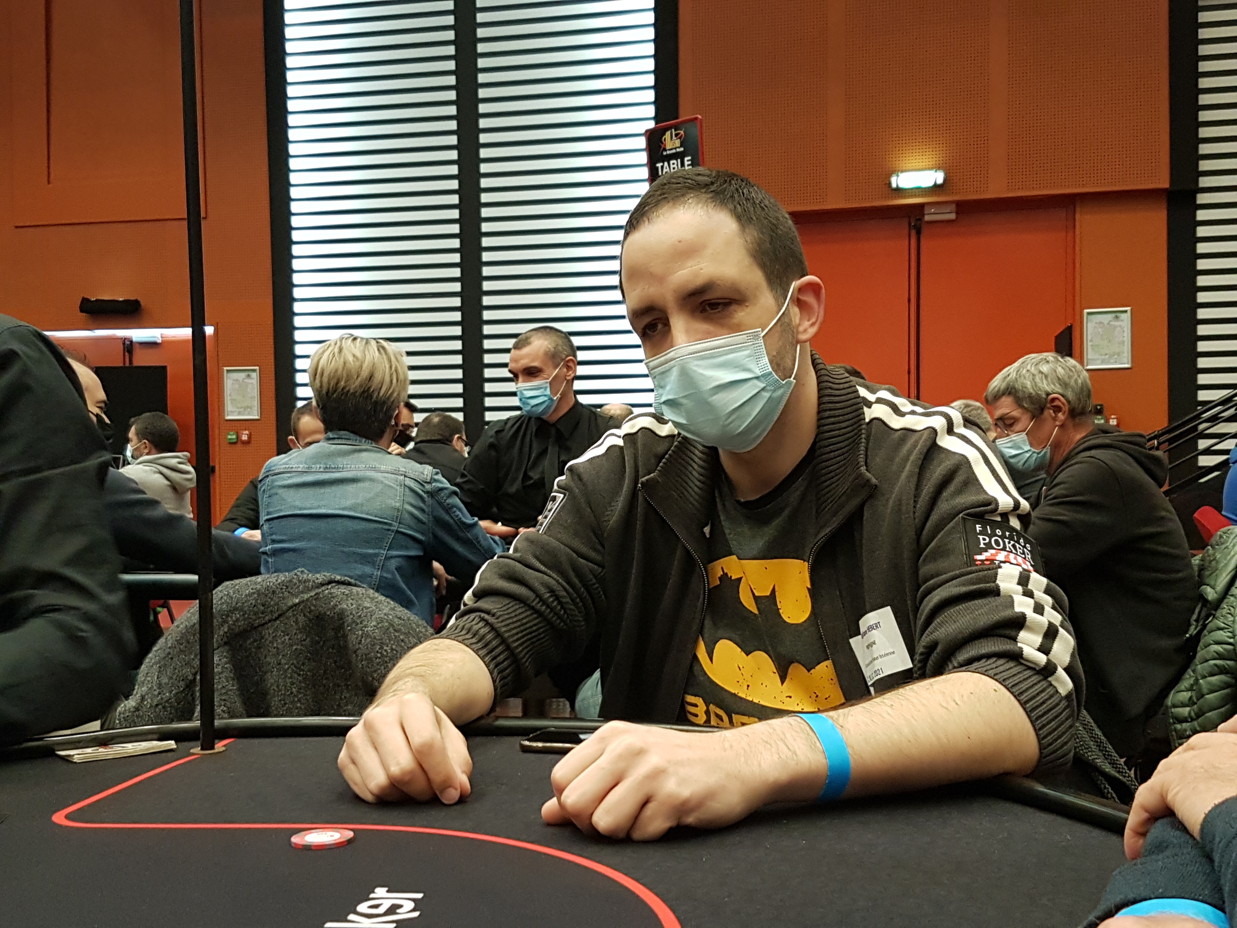 Alors qu'il ne se passe pas grand chose, il faut l'avouer, et que le deuxième round vient de démarrer, on cherche quelques têtes sympathiques, quelques fringues singulières. Et on tombe sur Stéphane 'Proph@ne' Hebert, de l'Association de Poker Isséenne.
