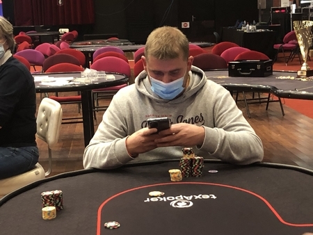Guillaume Zanchet (Zinch) toujours de mon club, Le FLOP la passion du Poker (18) viens de doubler sur son tapis.