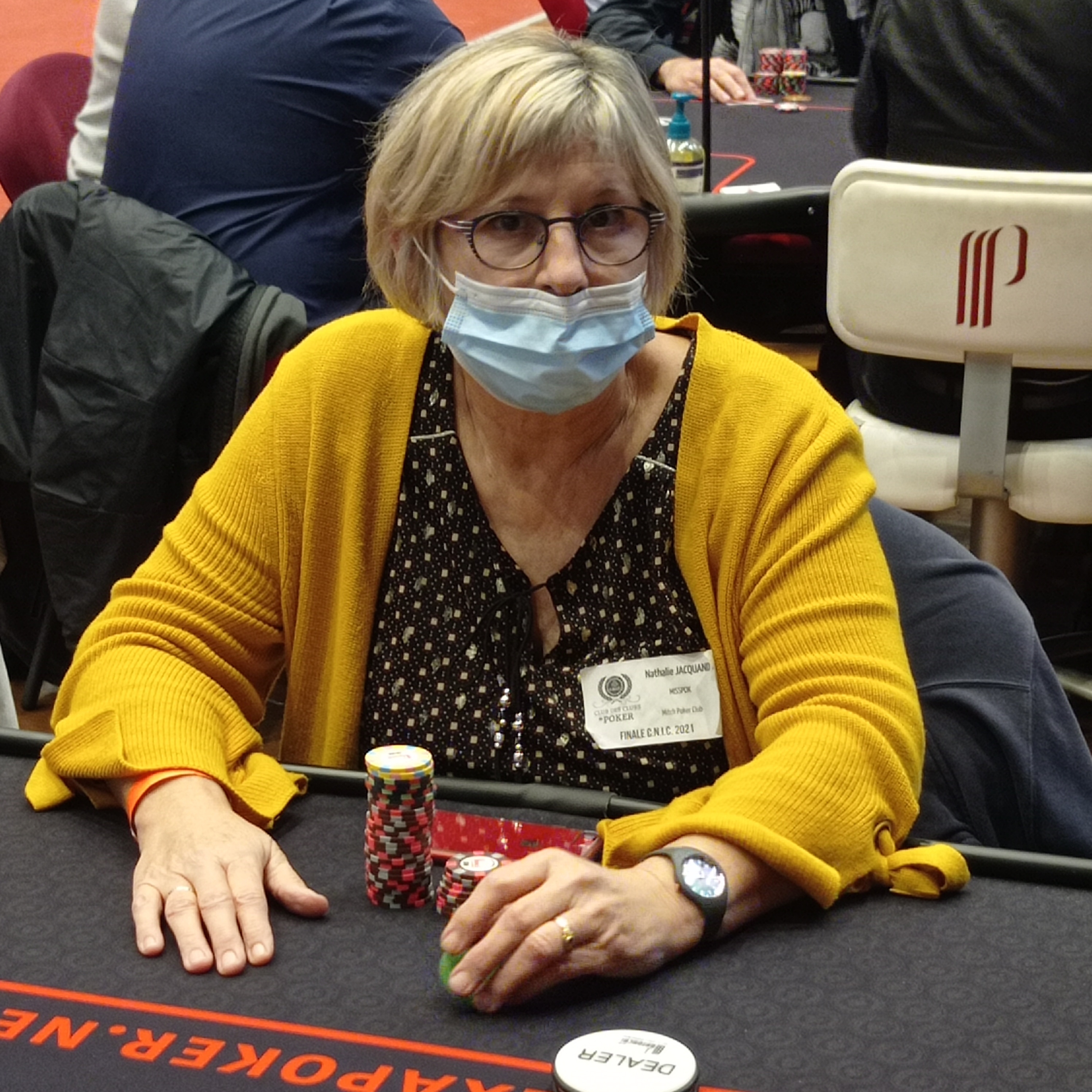 Encore 27 joueurs en piste...et parmis une seule femme compte bien usé de ses atouts pokeristique pour faire face à ses messieurs il s 'agit de Nathalie JACQUAND MISSPOK du MITCH POKER CLUB.