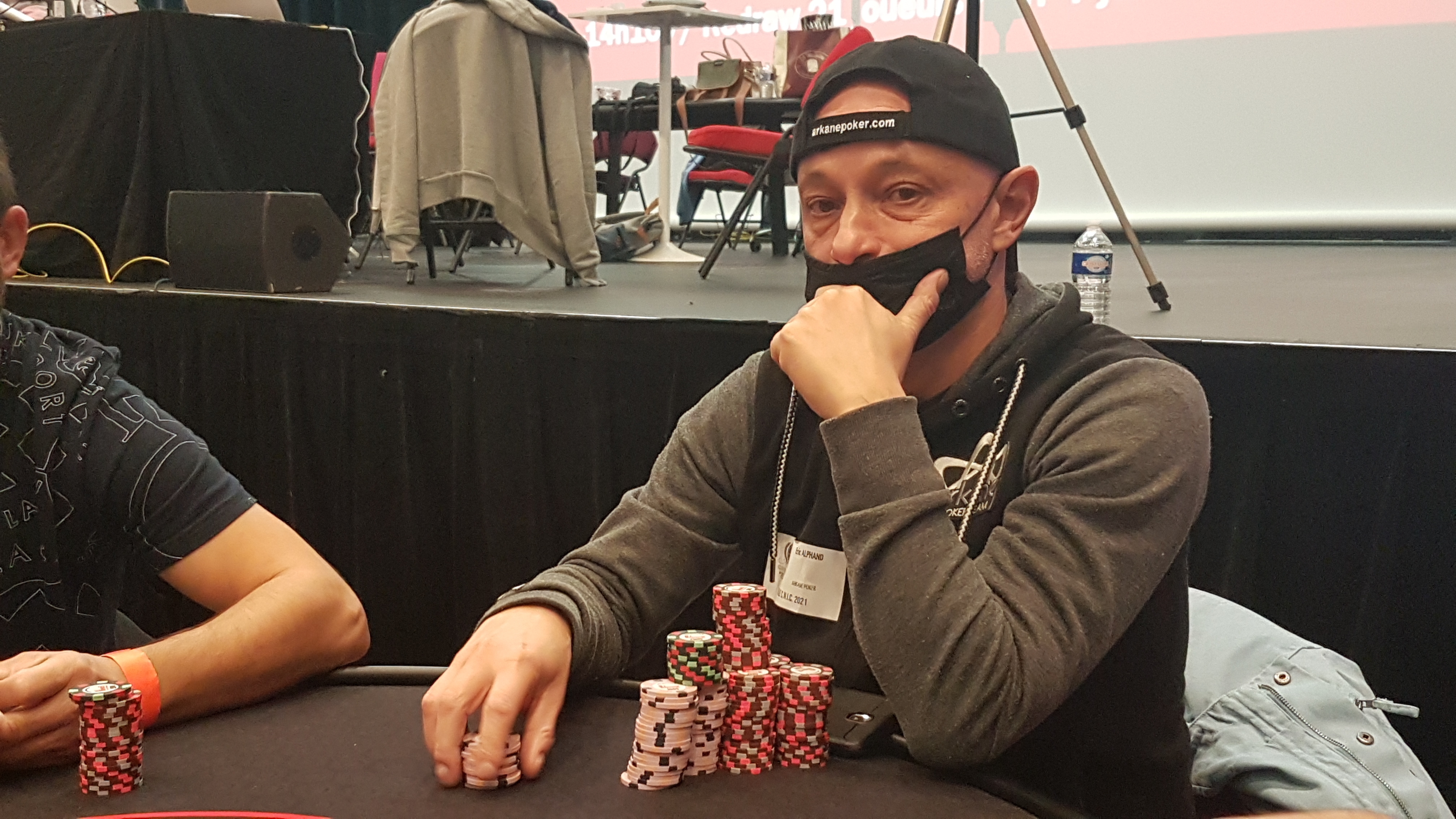 Je l'ai raté ! Moi qui voulais essayer d'interviewer le CL au Lunch Break, Thomy Anneheim (Friendly Poker Club), émarge à 1,55 Millions de jetons. Heureusement que Burd connait l'oiseau. En deux temps trois mouvements, Thomy était de retour dans l'aire de jeux, frais et dispo pour être interviewé par JiJi.