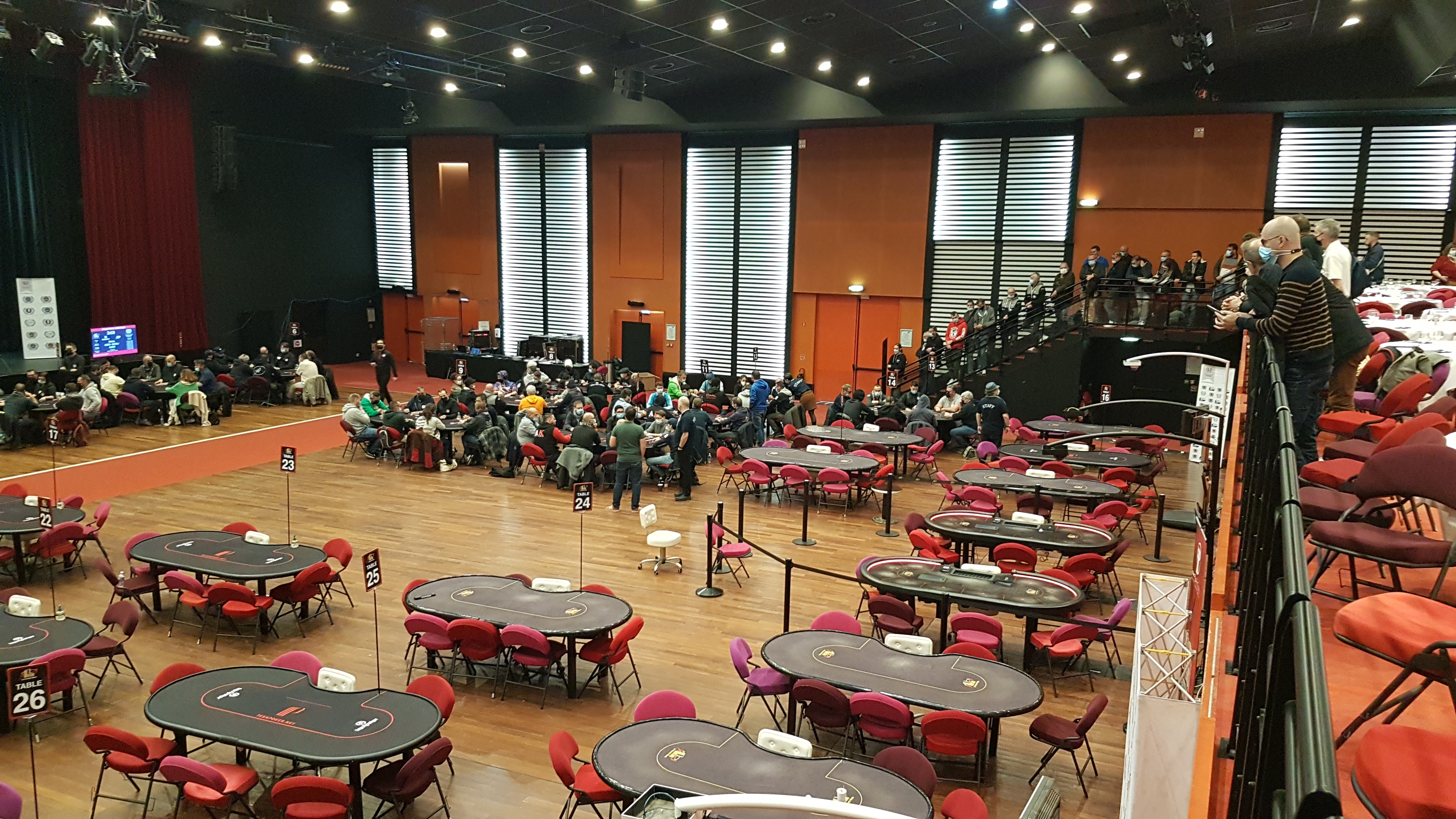 Il est très compliqué de suivre l'action aux tables, tellement ça saute de partout. On a quand même réussi à voir Thierry 'Esste' Sini (La Ciotat Poker Club, dans le virage) briser les rêves de Mickaël 'Desperados' Tavernier (AVO Poker, debout). A tapis préflop, Thierry avec AQ a call la boite de Mickaël avec A[c]d[/c]T[c]d[/c].