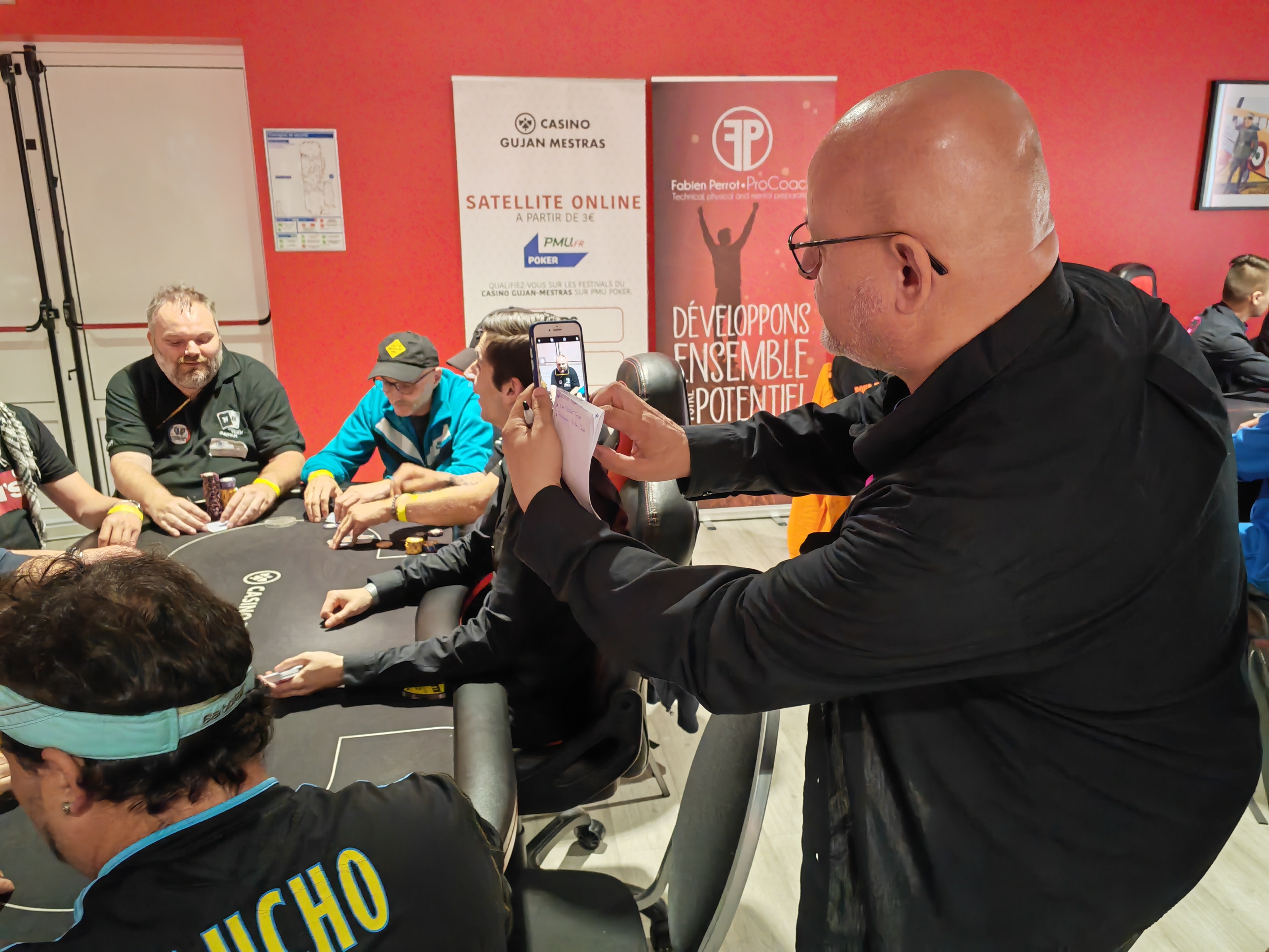 A l'origine, les accréditations coverages clubs devaient être, pour la première fois, refusées pour cette édition du C.N.I.C. 2022. Mais, argumentation à l'appui, Morbak (Eric Clemens, NH Poker Team, en pleine action sur la photo) a réussi à nous faire changer d'avis. Plus qu'un coverage club, c'est un coverage régional qu'il réalise.