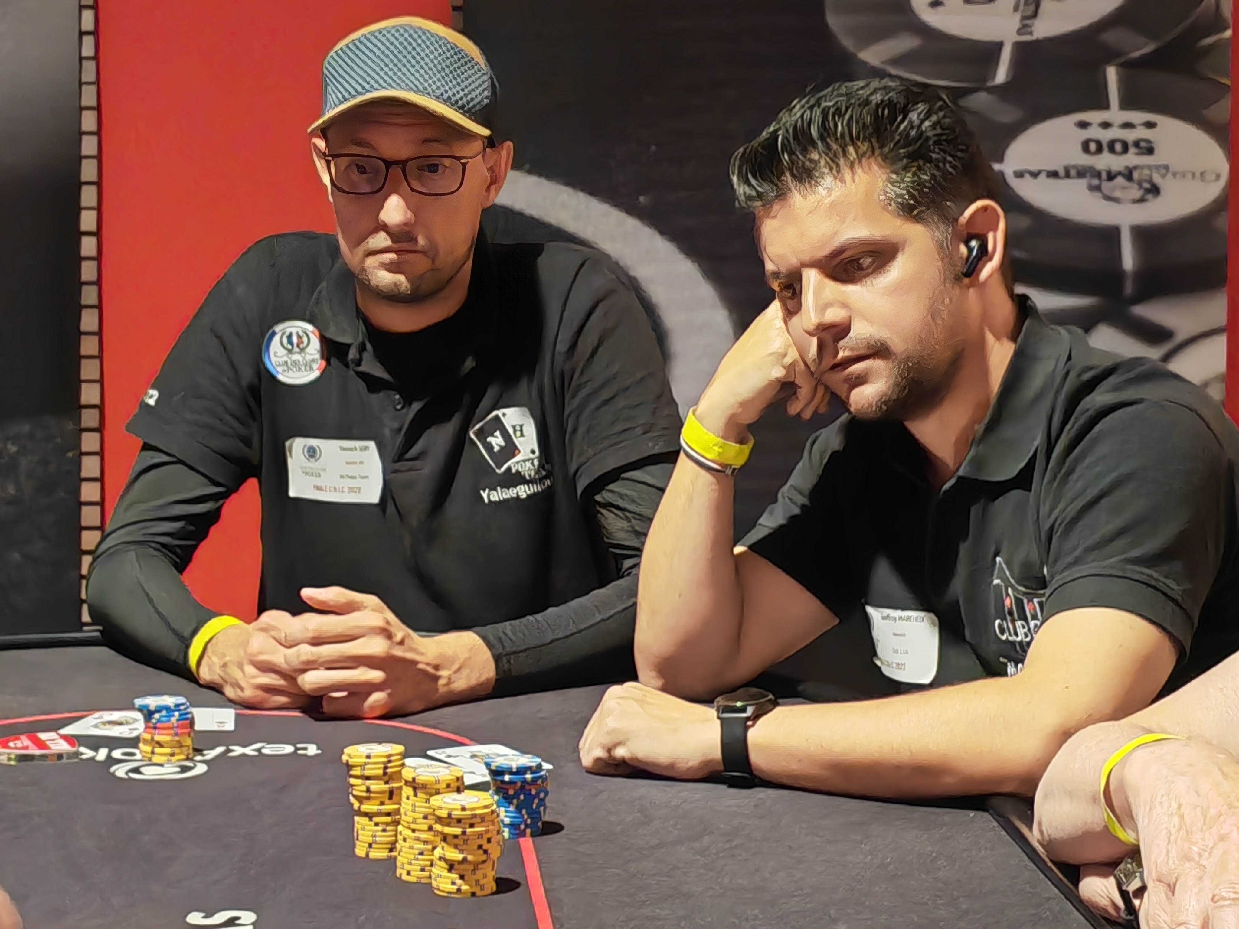 Olivier, à droite, sans aucun regard pour son adversaire en train de se lever, pointe désormais à près de 170k jetons.