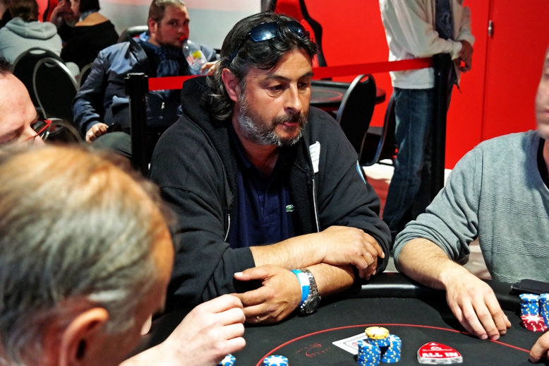 Quelques secondes après l'élimination de Maurice Zaragoza (FM Poker Team) par Pierrick Le Goff, toujours aussi en forme, Vincent "Destroyer" Volet (en image) a aussi vu son histoire se terminer dans ce Main Event. Ayant envoyé ses 150k jetons avec A9, il s'est fait payer par Jean-Luc "Goulouk" Paskiewiez et son AK. L'As apporté au flop ne fut d'aucune aide pour Vincent, qui aura eu néanmoins la chance de voir sauter Maurice juste avant lui. Cela permet à Vincent de prendre 235€ quand Maurice, lui, n'empoche que 185€.